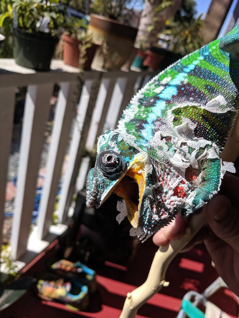 So today I came home from work and my dude was posted up like this !!! Second shed in my care really hope I can coax him onto the scale and see if our big gains diet is paying off lol