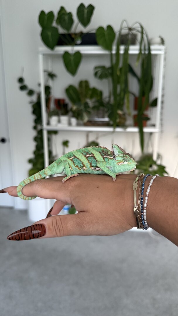Hi everyone I have a new chameleon that is maybe 4-5 months old. A couple nice people here guesstimated the age for me.