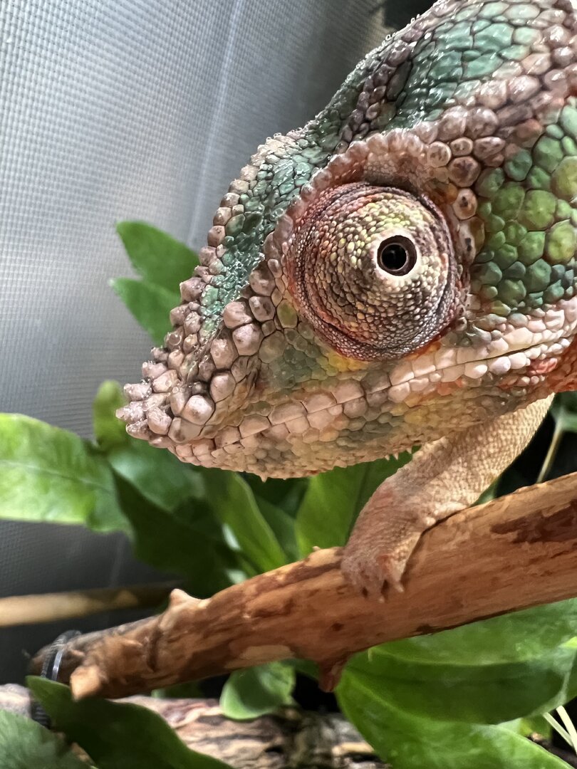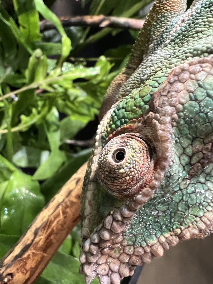 My chameleon has struggled with gular edema for a few months now. I am not entirely sure why or what caused it, but I was told that it could be related to vitamins. I was also told it could be related to hydration. Additionally, his eyes look a little less perky and the borders of them looks wrinkled and off (see pics) - Can someone please enlighten me and maybe help me figure out how I can help my Cham?