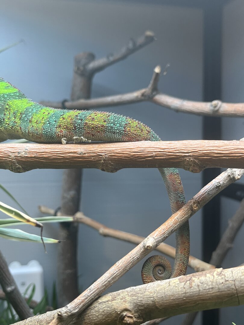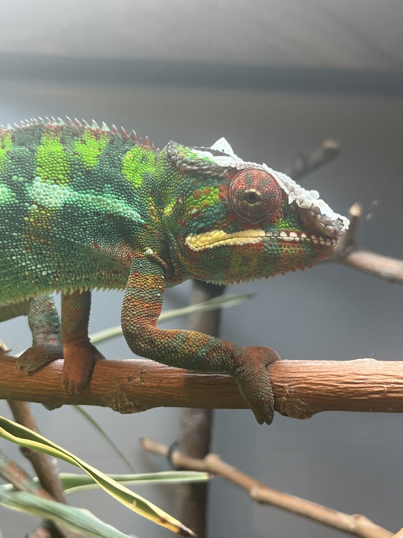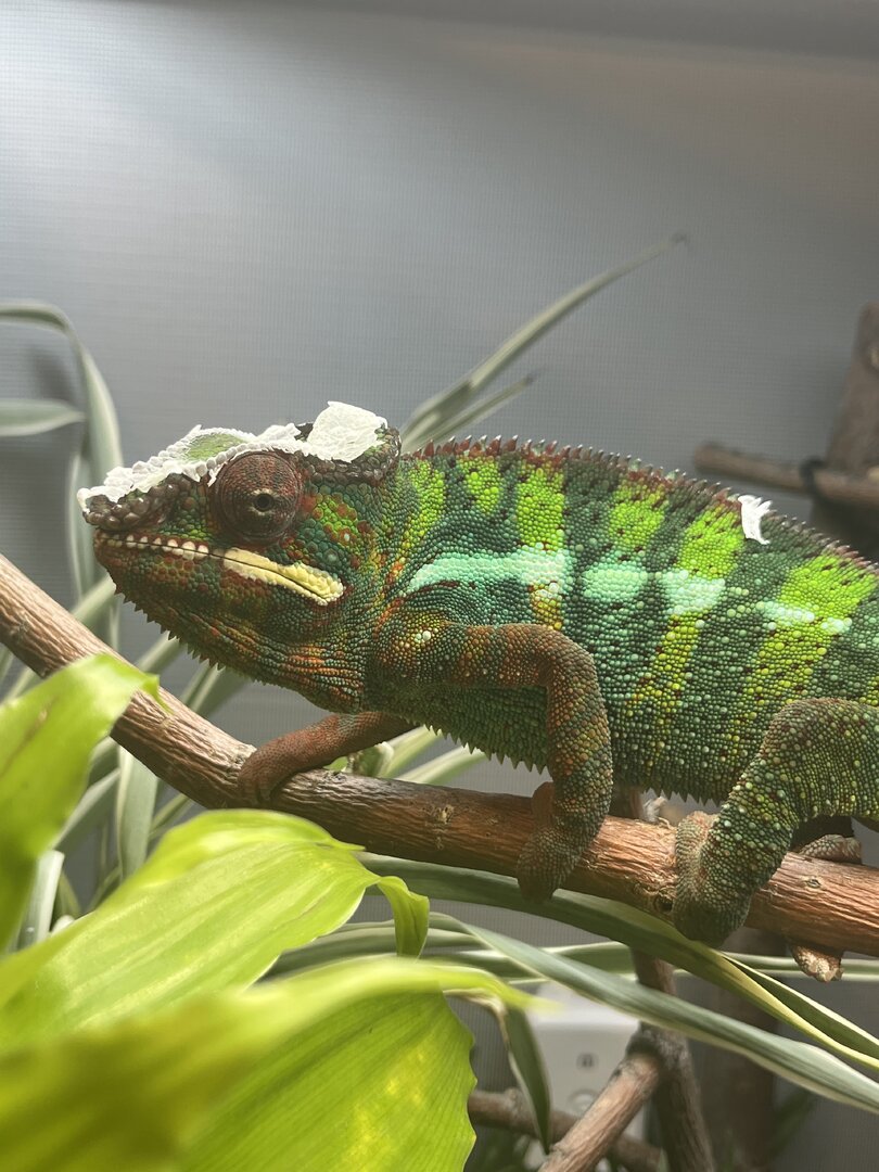 - My husband started playing video games in that room and I think the screen bothered Treebeard, we have since moved his enclosure so he cannot see the screen and he seems calmer after this, however color changes have not gone back to his blues and greens.