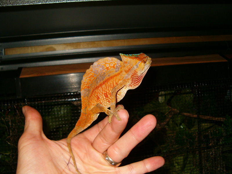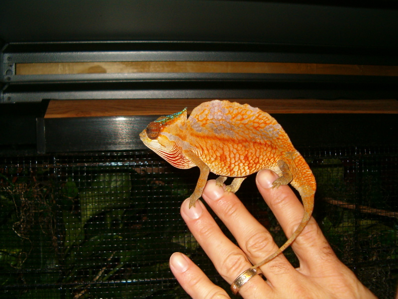 He is hand feeding and seems to be quite comfortable in his enclosure.