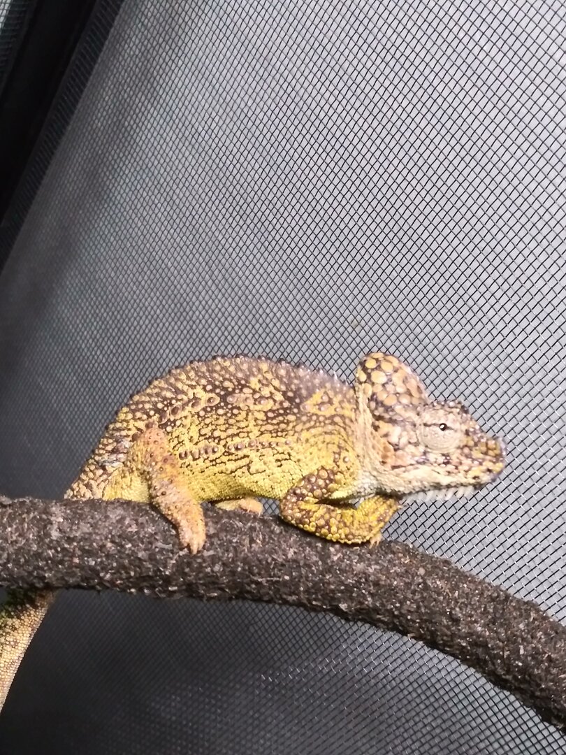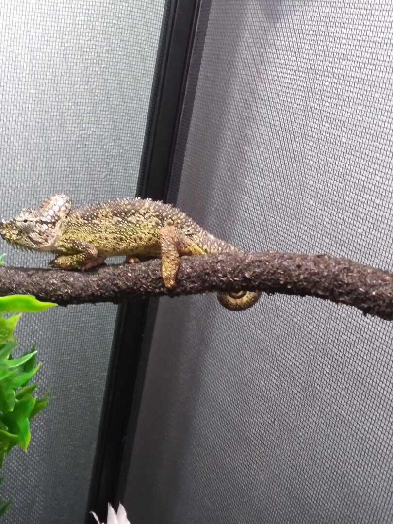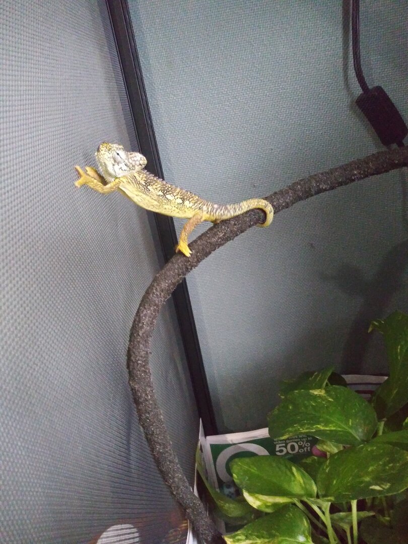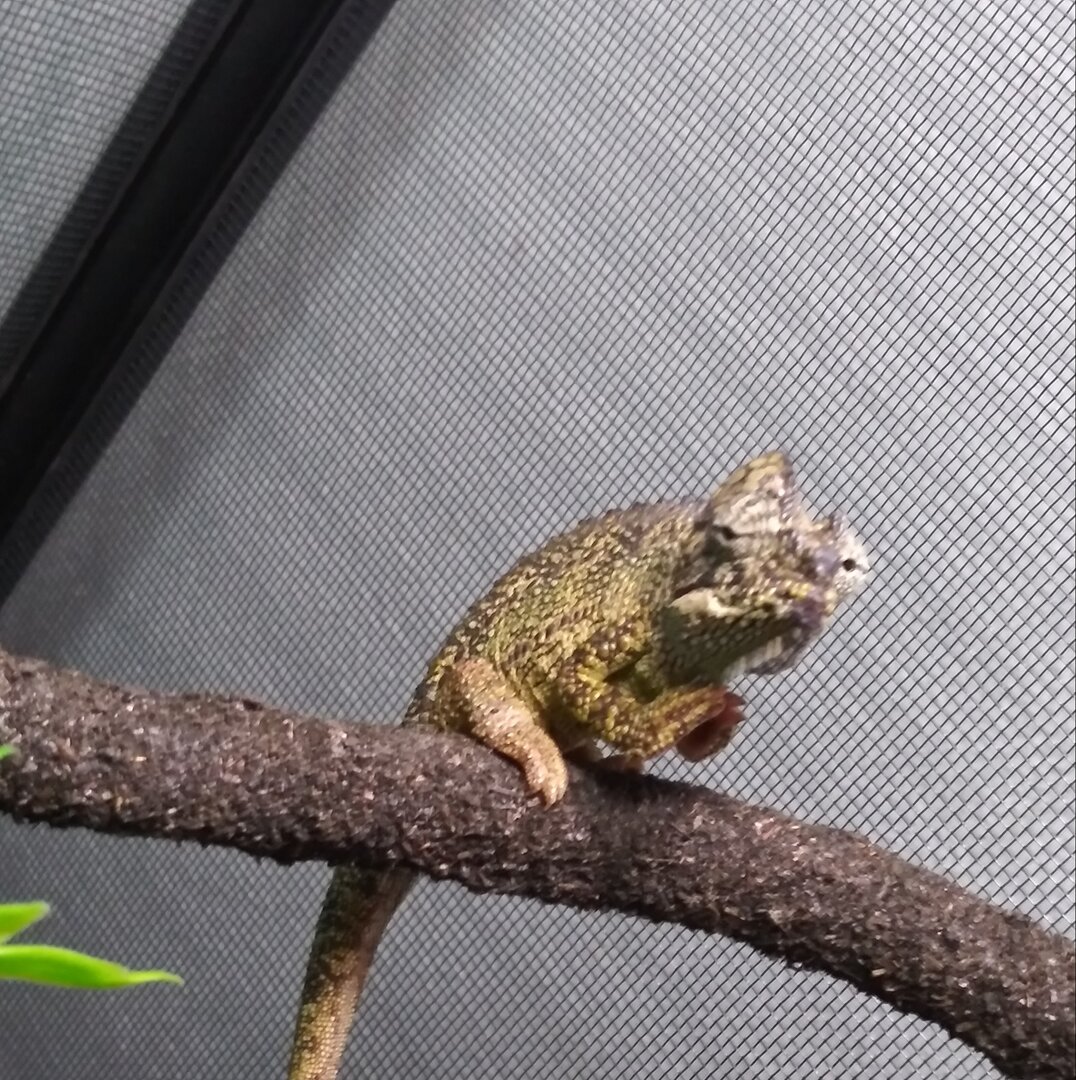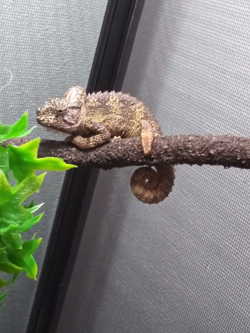 I need your guys help though. I couldn't really find a detailed caresheet online for this chameleon. I'll find some sites with a bit of info here and there, but nothing really detailed. It could be that i suck at finding information tbh :'). Which is stressing me out a bit. Any advice or information you guys can give is appreciated. I made my mesh cage with a jacksons in mind, but will it work for this kind of chameleon too? Are pothos and drawf umbrella plant/tree good for this kind of chameleon too? I'm hoping that i don't gotta switch out the plants at this short of a notice but i will if i gotta.