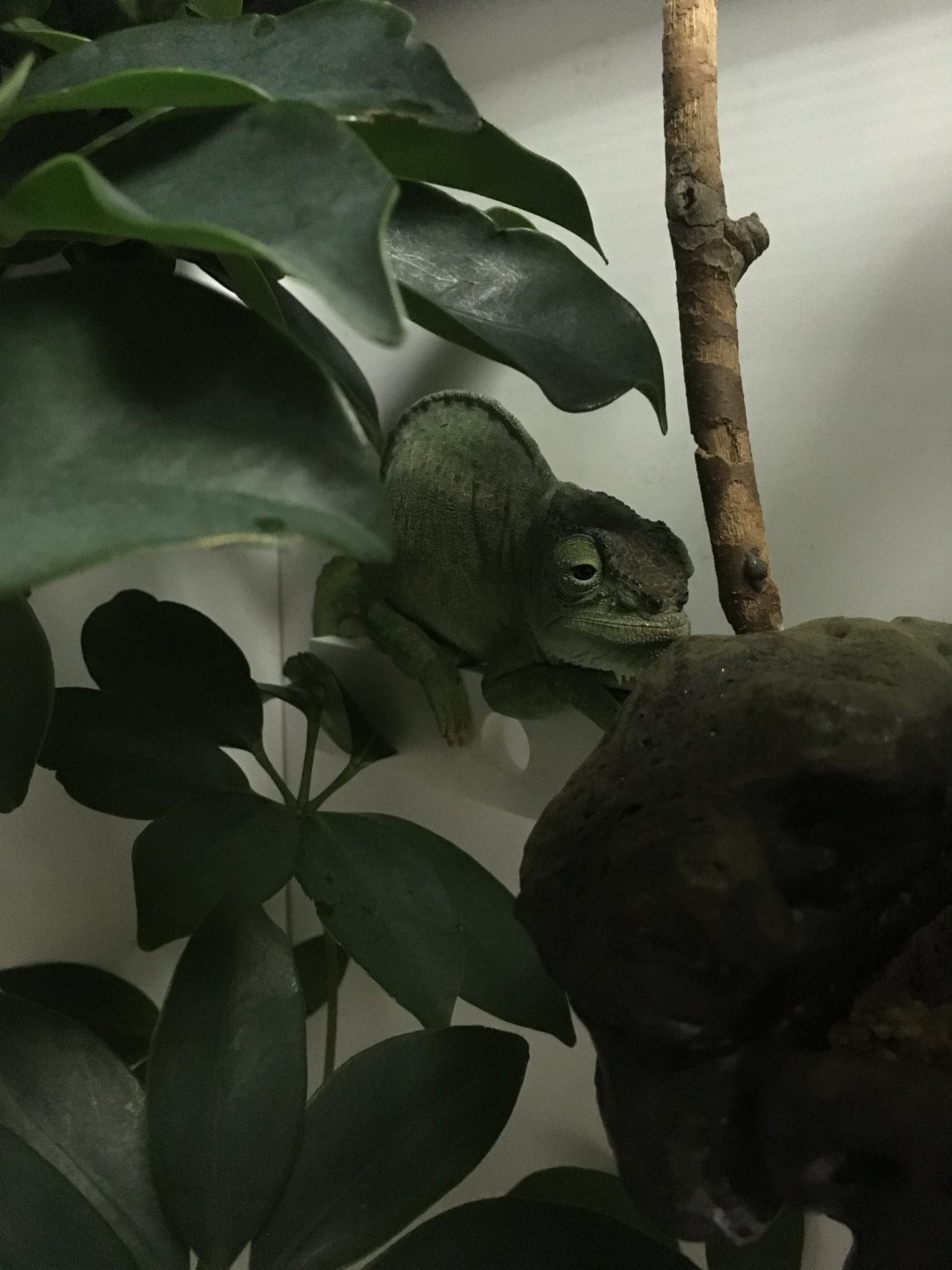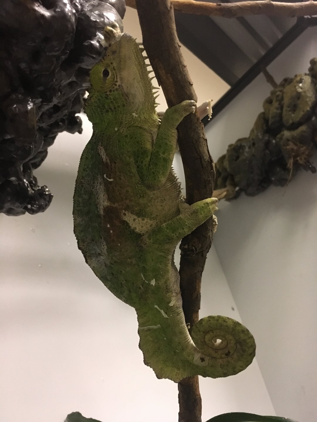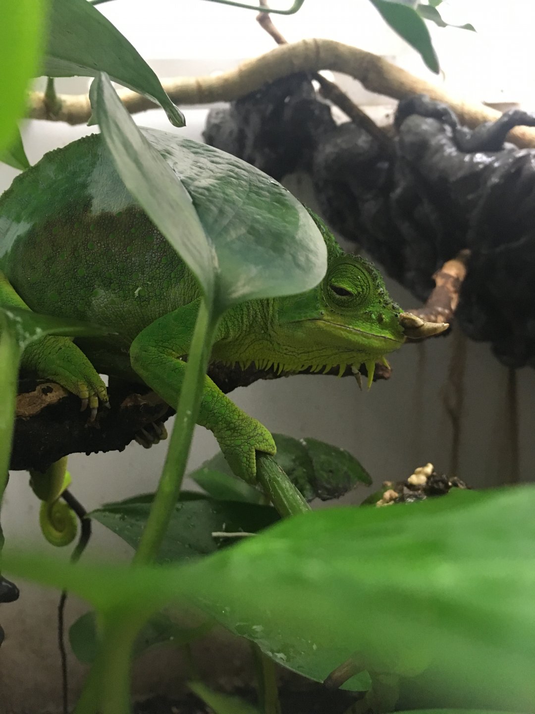 After several years keeping and breeding chameleons I am forced to part ways with my beautiful T. quadricornis. I have 2.1 Trioceros q. quadricornis available for sale. All of them have been in my possession for about 3 years; the males are LTC, the female is CBB and has never been mated. They are wonderful, healthy animals. The males were dewormed upon import and have been doing well since. They eat well and have never had health issues while in my care. I have posted some (pretty bad) pictures of all of them – they hate being photographed, and are much better looking than shown in my photos. Some information on each of them:
