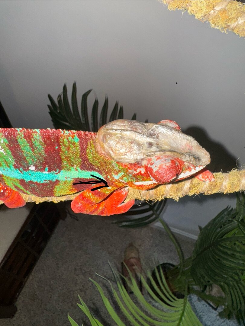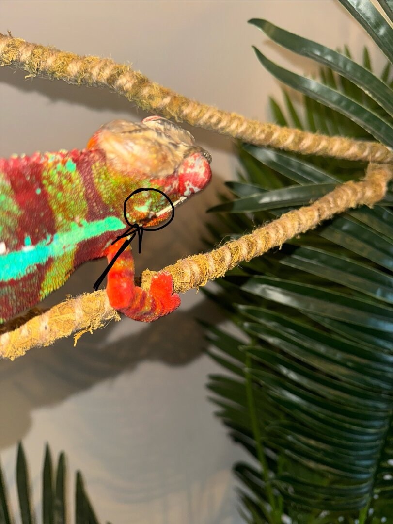 I noticed a bump behind my 3 1/2 yr old male panther chameleons head/jaw area. This has only recently formed and is only on one side of his body. Could this be a tumor or infection? Any help is appreciated! he is acting completely normal, eating and drinking well, fairly active. (Would also like to note that said bump moves with the motion of his tongue)