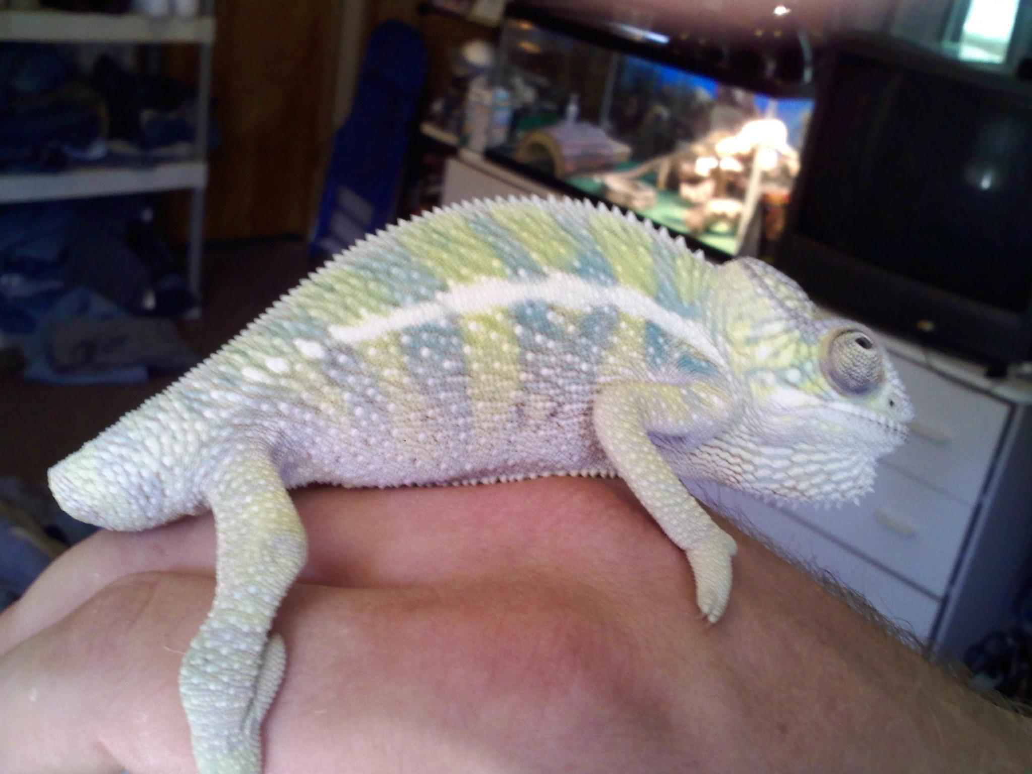 I'm starting to annoy myself with weekly updated pics! Sorry, I just got excited when I took him out today and he went from his normal lime green and blue to yellow with blue bars. Pics kind of make him look more green than he did- he changed back to green when I put him in natural sunlight to try and grab a pic. But heres what I have- hes starting to shed again so I can't wait to see how he looks in a couple days!