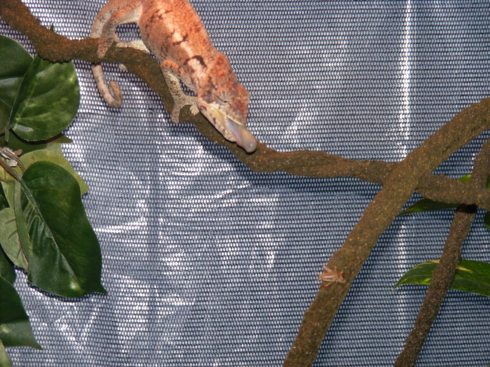 skyedog Established Member May 17, 2009 #1 Tank before he decided to take a bath... Tank still wet after climbing into the mist as I was spraying the enclosure... Reilly relaxing this morning on his favorite vine... Up close and personal... I don't think the cricket has any idea of what's about to happen...