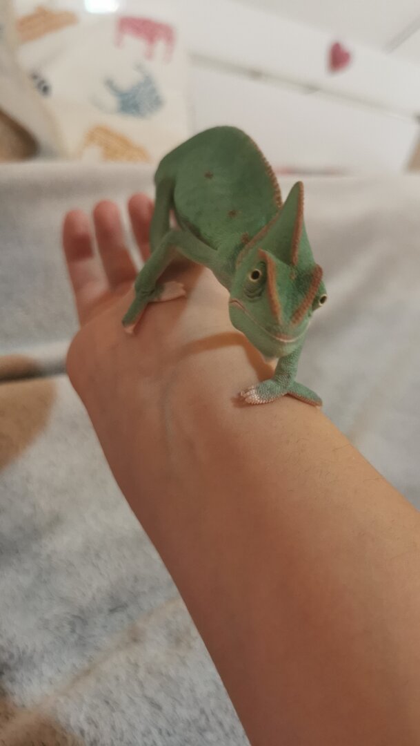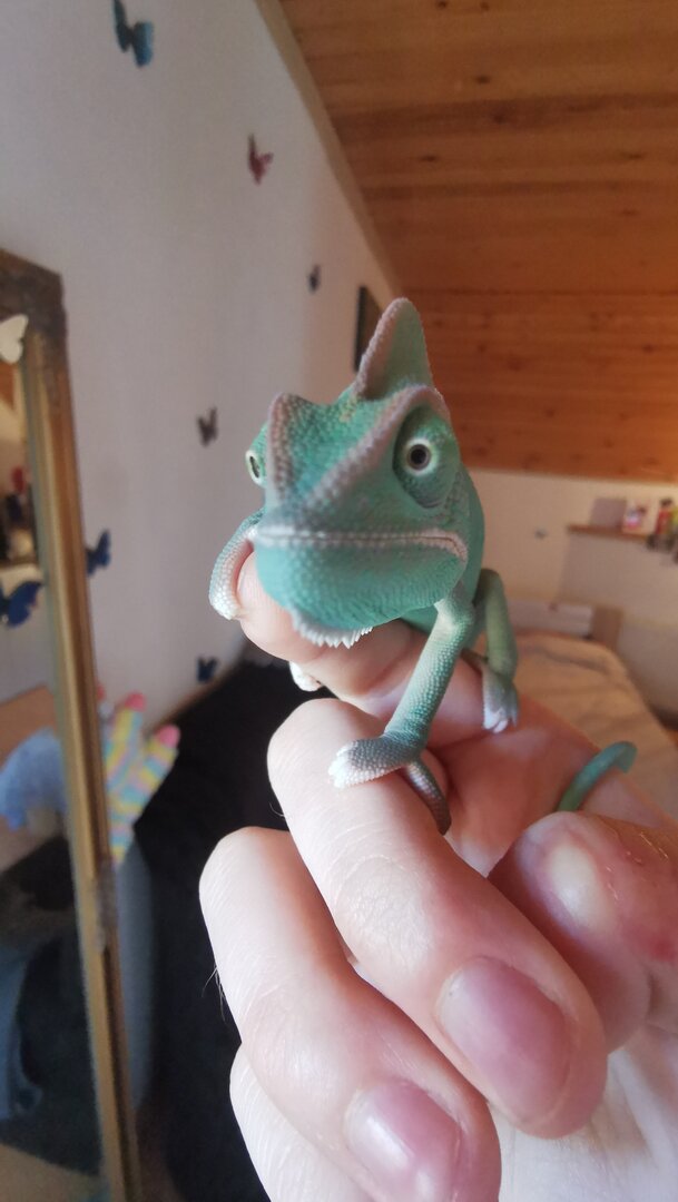 hello guys! I was at the vet today and everythings fine with her so far! I was there few hours for the fecal exam and general exam. Shes okay and very healthy!! Thank you for advice everyone! the only thing I need to start doing that they told me is to spray her free range less since she is a yemen cham. And few pics of my lil girl!