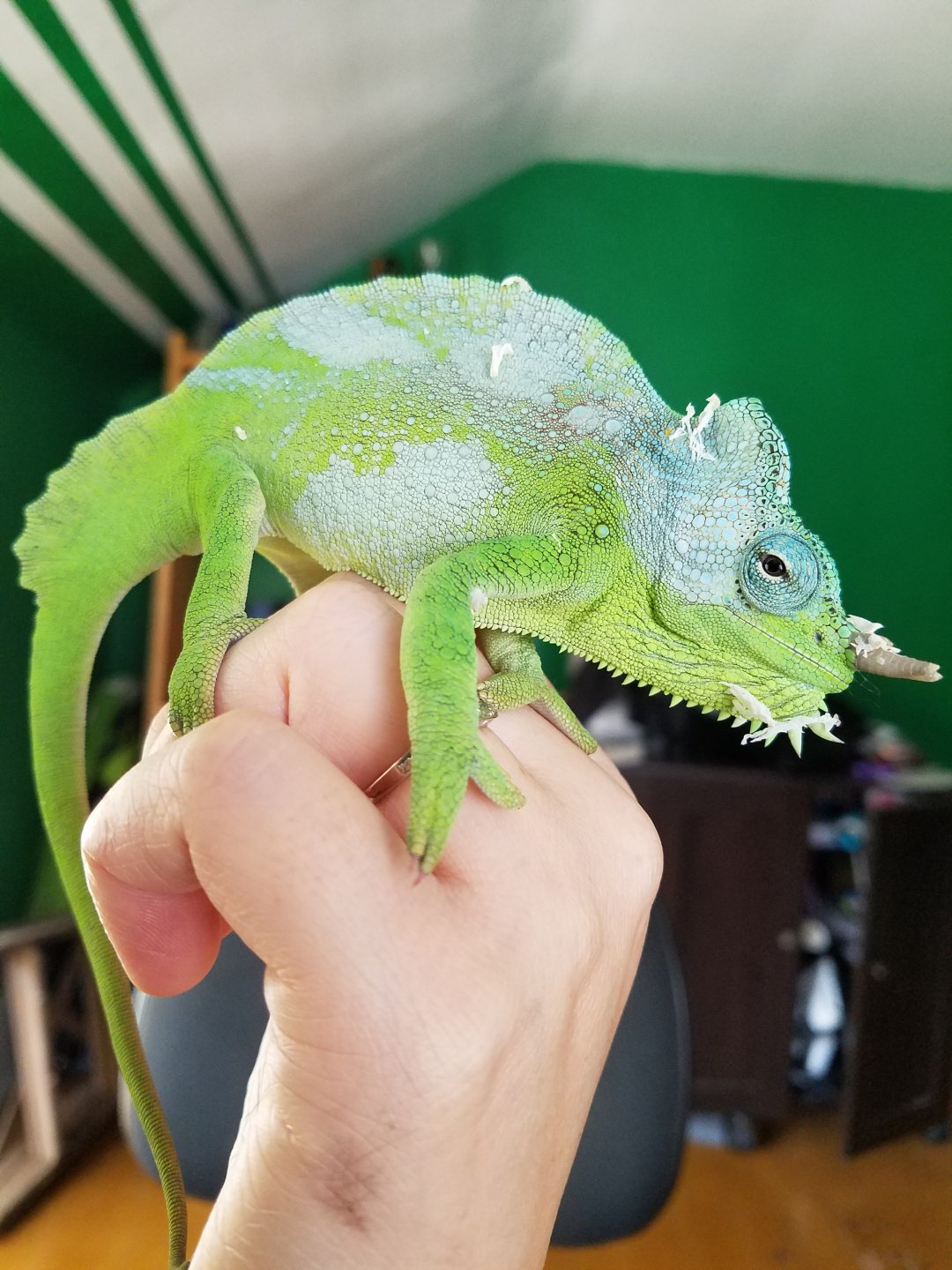 Because I can't help myself! He is 4.5 months old and weighed in at 17 grams today, officially doubling the 8.5 g weight when I got him on May 4. He now sometimes eats out of my hand and doesn't mind me handling him sometimes (certain days he is not keen on coming out so I leave him be). Not a ton of pictures on my phone to share, but one of these days I'll load the ones from my actual camera.