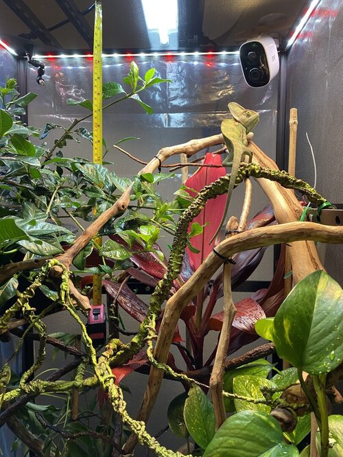 So, I put in a new reptisun 24” T5 HO UVB bulb on Jan 31st. I decided to get a meter and it arrived today. But instead of it reading normal (or high - if not normal), it reads almost zero where he likes to go after basking. It’s about upper/mid cage if looking horizontally, and in front 1/3 of enclosure, if looking vertically. As I went up his branch the highest point, this is the area I was slightly worried about, it’s only 2.5 - 3.0. Unless I’m getting old or bad info, we want our veileds in the 3 zone, right? That top area where it’s “highest” is only about 8” from the fixture/bulb…which is why I thought it could be a little high if it was in upper 3’s or higher. So I’m wondering if this is bad…if so, how bad? I personally like options and I think chams do too. So I figure I need to get him more UVB options. Or am I overly worried and this is this ok since it’s reaching a level 3 - but quickly falls down from there. I actually did move his uvb fixture off immediately! It was on little 1/4” to 1/2” supports, so it’s now a little lower (even if by very slim margins), at least until I get this sorted out.