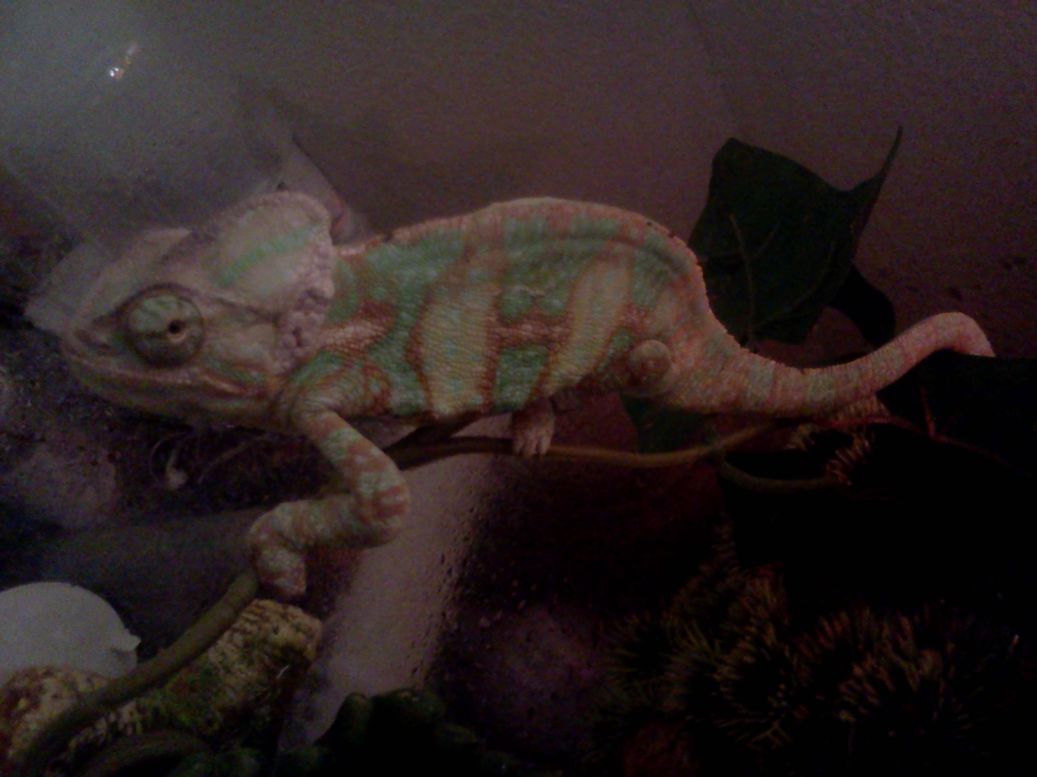 Exposure to proper UVB, appropriate temperatures, supplements, a supply of well-fed/gutloaded insects, water and an appropriate cage set-up are all important for the well-being of your chameleon.
