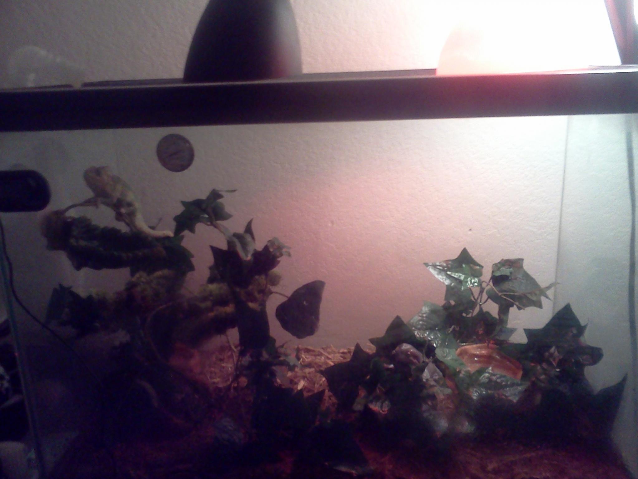 Watering-I have a fogger that's set up on a timer for 4 times a day on low for 15-20min each time (noon, 3, 530, and 730) I mist his mouth with a water bottle straight to his mouth and on leaves. i have seen him drink every time this is done, which is also done at the same time as fogger goes off.