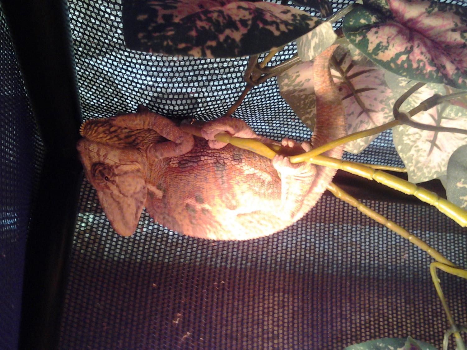 My Chameleon-veiled chameleon,male,age not sure had him since end of feb and he was a baby.