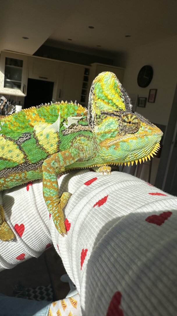 I have owned Kenobi, My male (I think) Yemen Cham for 2 years and occasionally he displays colours that I don’t quite understand.