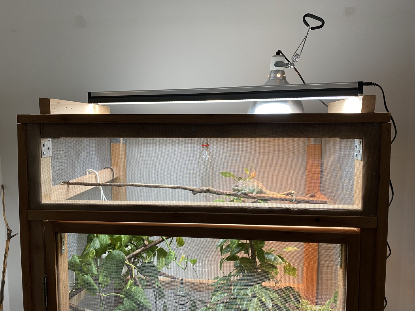 About the drinking - I saw him drink from the glass; or sometimes he will drink straight from the (makeshift) dripper. His urates is white-ish like, I guess, it should be. But I was actually thinking about a temp cover for some of the sides > firstly cause of the spraywater and secondly it‘s getting winter here so maybe for the temps.