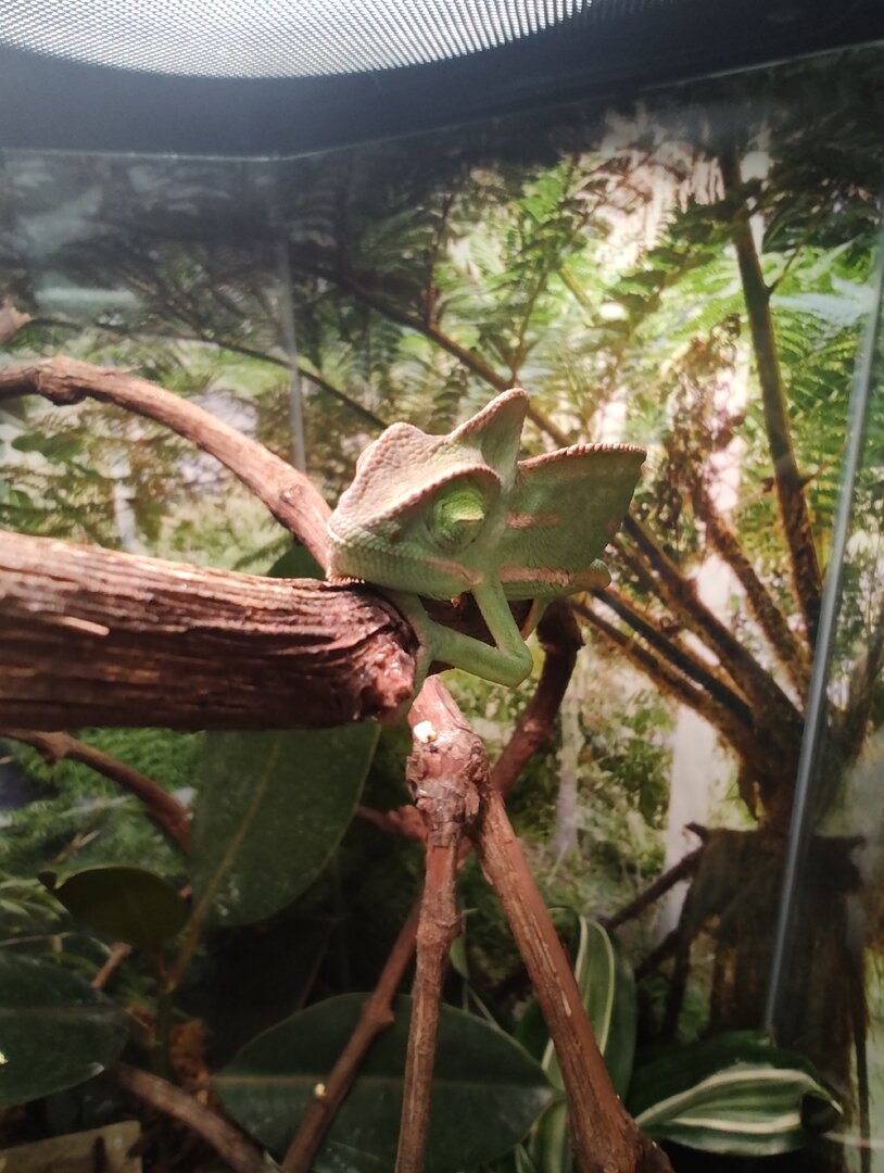 Hi we are new to chameleons but not reptiles. We got a young veiled Chameleon about 3 weeks ago. For the last 5-7 days he's been closing his left eye and will sometimes rub it on the branches in his cage. I say he, we don't know. Lol