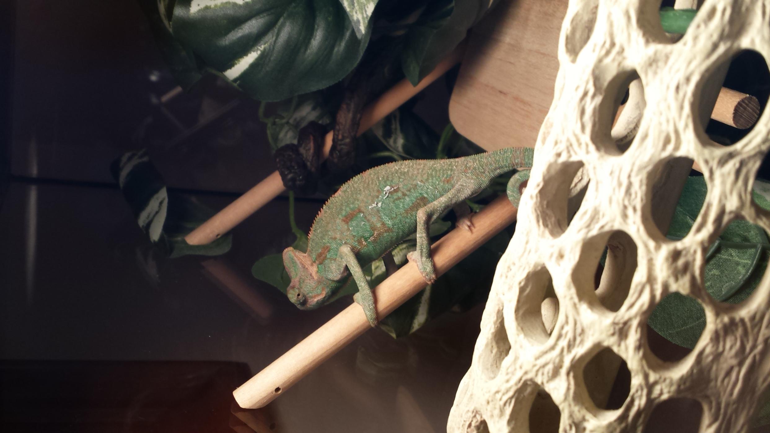 Just got my Chameleon today, he is a male around 4-5 months old. Are these brown spots normal or stress colors?