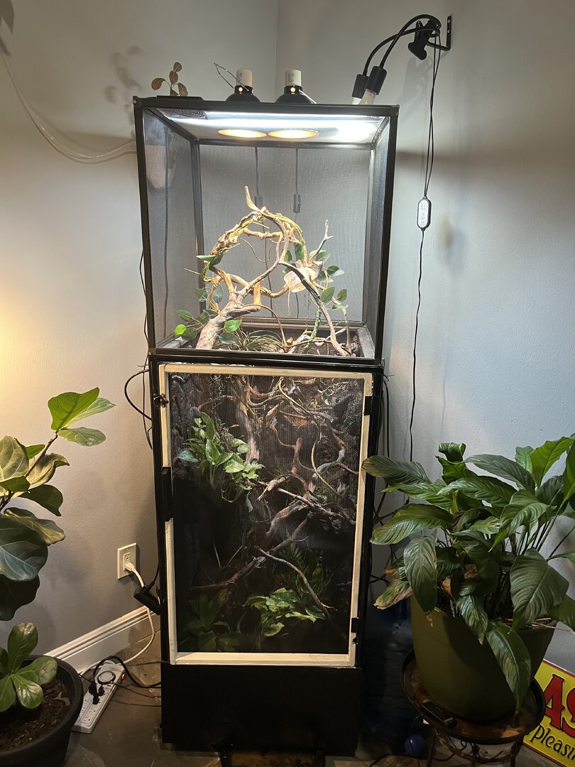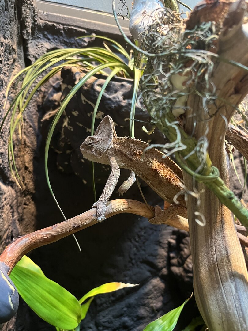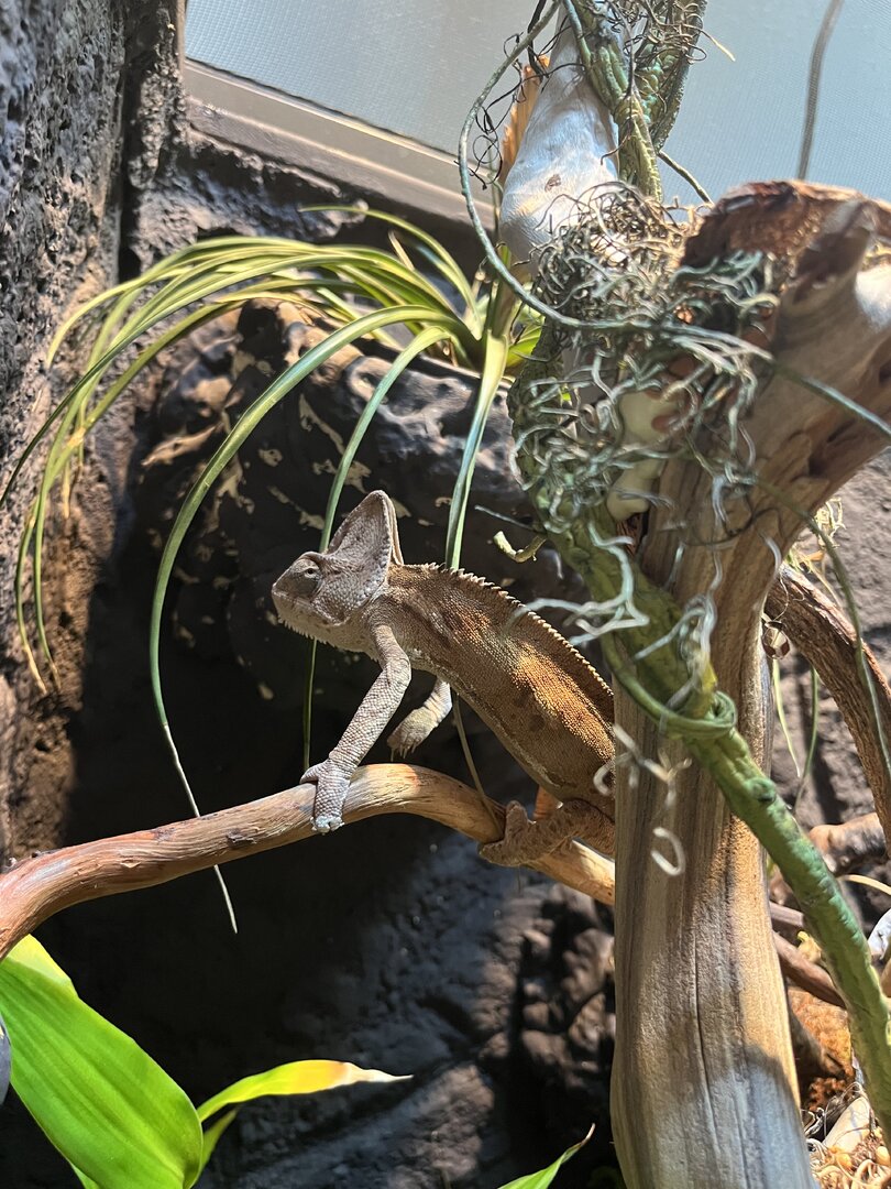 I purchased a juvenile veiled chameleon around 6 months ago and I’ve noticed over the last few months that it’s become very dull gray with no color and seems kind of skinny. I’m not sure what the problem is. I have reptisun 5.0 uvb as well as basking bulbs set up to come on from 8am to 8pm. I have a misting system that automatically spays the tank throughout the day and night. I have ventilation fans built in on the sides and top of the enclosure. I dust the insects with repticalcium without d3 every day and with d3 about once a week. What am I doing wrong???