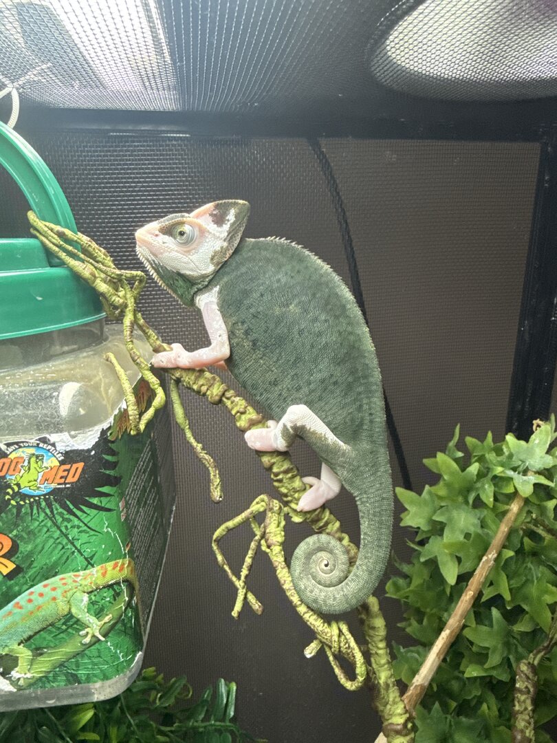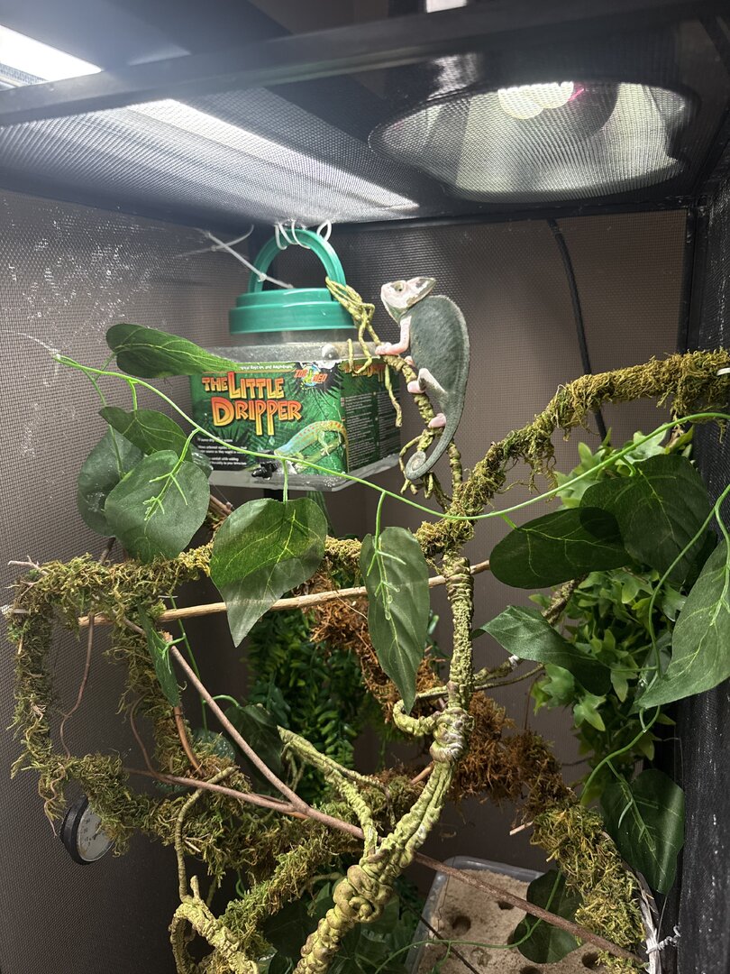 I can tell you though, that I would remove the moss and replace the artificial plants with real non toxic well washed one asap. Veiled females are famous for munching plants…especially when they are old enough to reproduce.