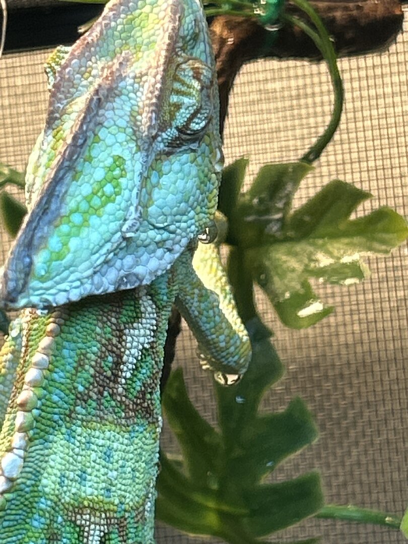 - Watering - What kind of watering technique do you use? I use a dropper as well as I manually mist. How often and how long to you mist? About 3-4 times a day for 5-7 minutes Do you see your chameleon drinking? Yes even now that she’s sick she still seems to drink as least a little bit