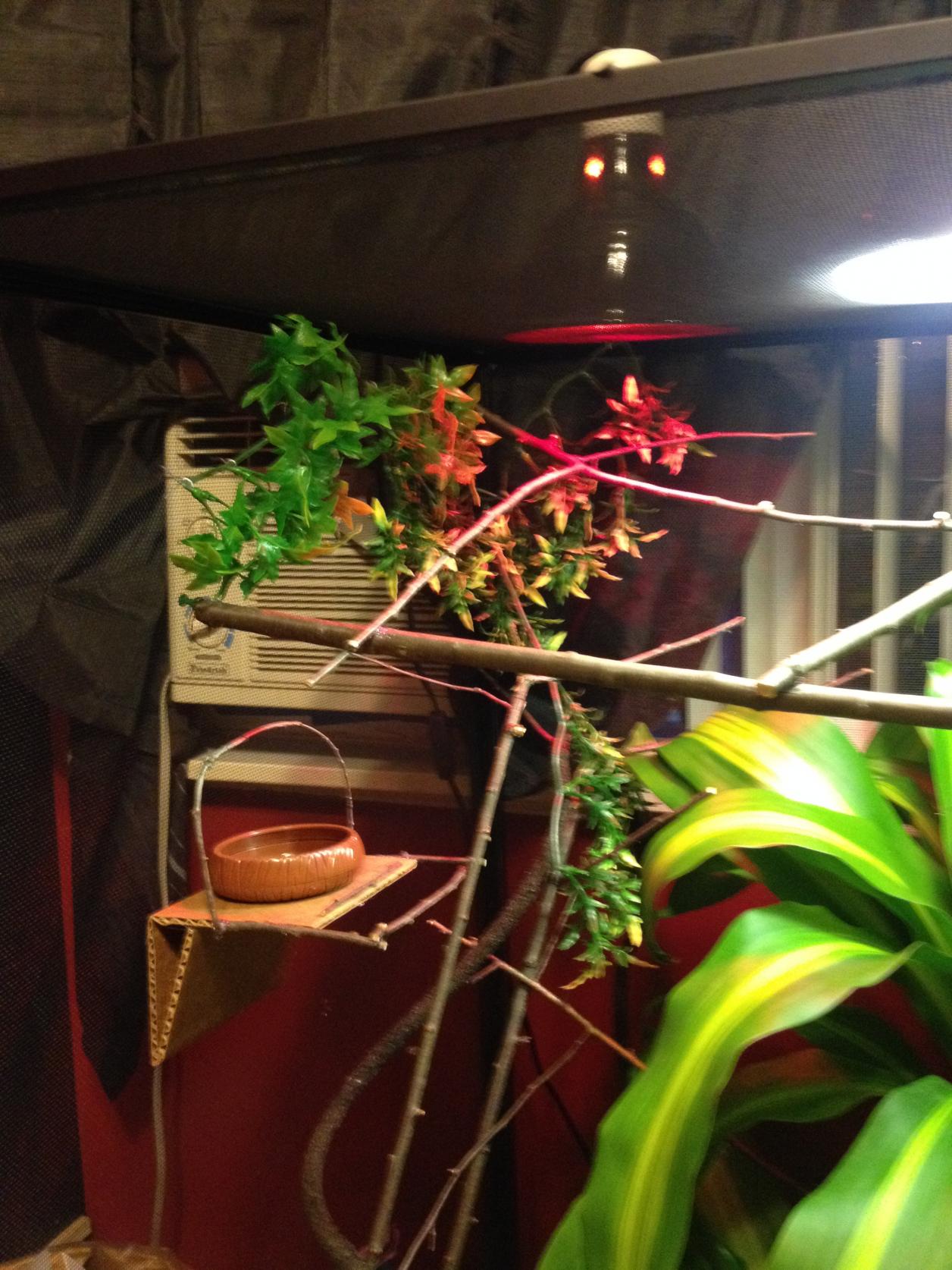 You could definitely have a bit more foliage in there. Maybe get some wandering Jew or Pothos for a hanging plant. Recommended is about 70% of the space should be taken up by plants and sticks etc.