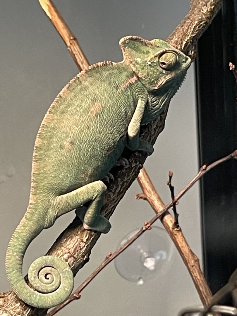 His casque still has some growing to do. I think that’s why you’re questioning his gender. Make sure your husbandry is correct (I’m sure we’ve gone over it already), feed him well and as soon as it’s warm enough, take him outside for a short time for some natural sun. Do not leave him or let him out of your sight for even a few seconds! They are quick and predators are even quicker. I sit and hold my chams or put them on a small plant on the patio table directly in front of me.