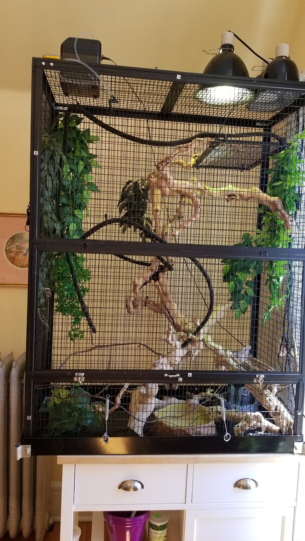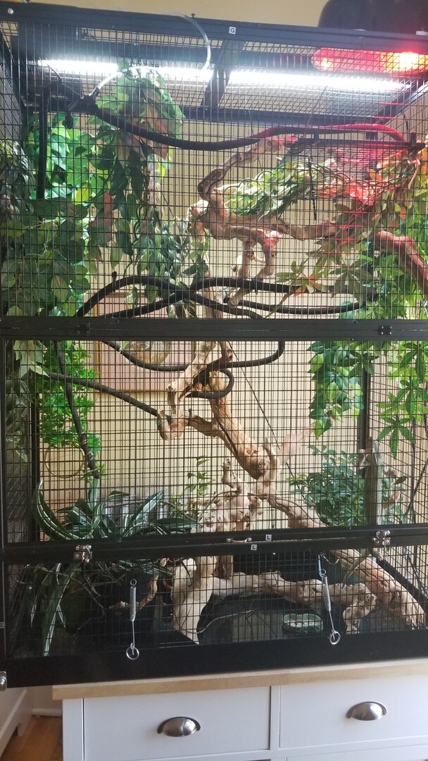 - Watering - We use an intermittent misting system and a running fountain that we clean once per week.