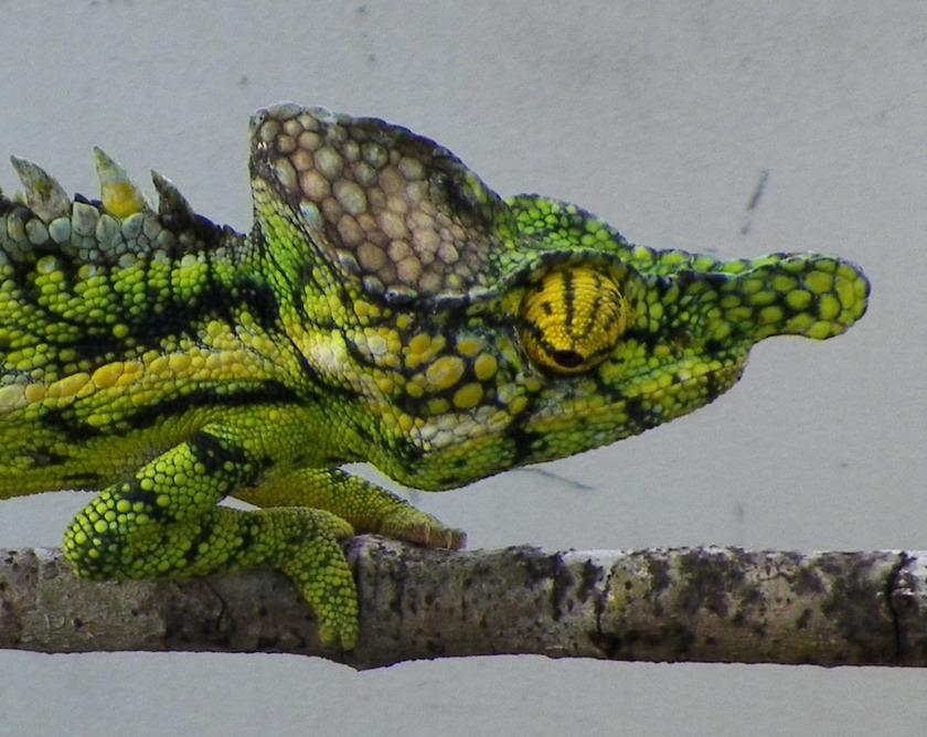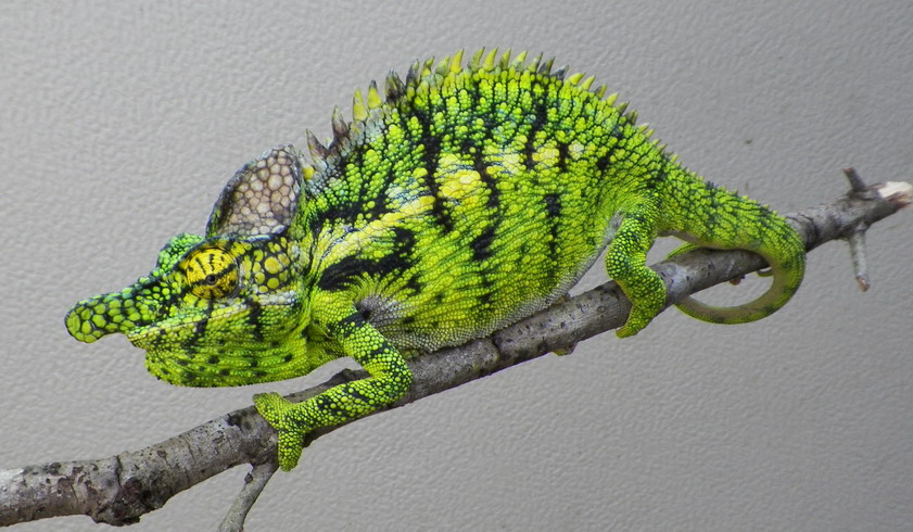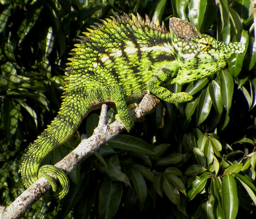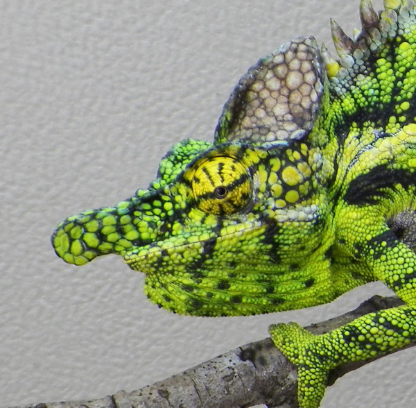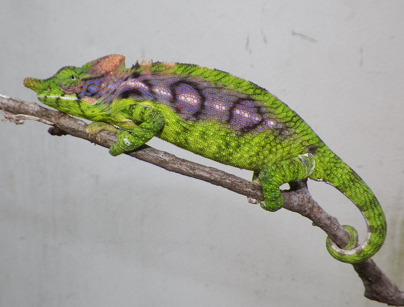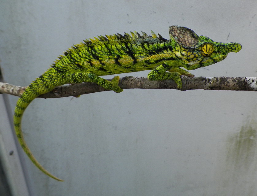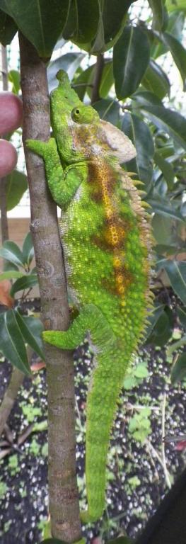 We have two adult WC Furcifer antimena available for sale. We imported them ourselves, and have had them 7 weeks. Fully treated and robust. I believe they have the lowest quota available (150 per year) of all currently exported chameleons from Madagascar, and have only a small restricted range there. They have been surprisingly non-aggressive right out-of-the-bag. Below are the two males available. Also pictured is a female, not for sale, but so as to demonstrate the potential for this most rare and beautiful species. The males are about 14" total length, and the female 9"