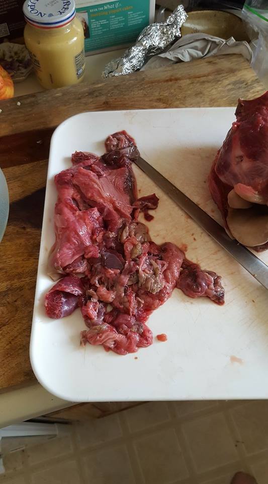 A lot of the extra fat had to be trimmed off and some of the excessive connective tissue, though I tried keep as much as possible for the health reasons they provide.