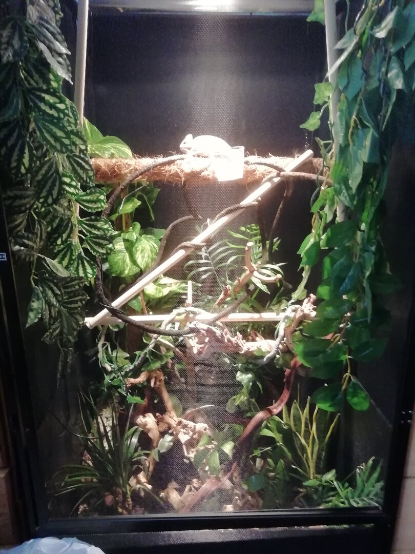 The enclosure conditions are perfect these past couple of days as general heat, basking heat and humidity. Yet Figaro seems to have lost his vibrant green colour! These days, he looked very pale green almost grey in fact. Just wondering whats going on? Any ideas?