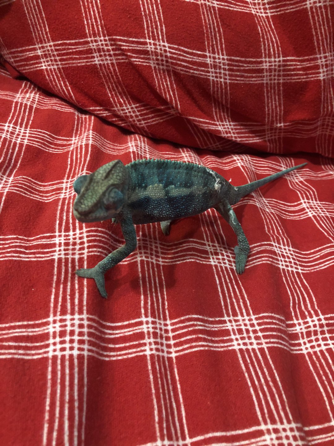 Hi I have a male panther chameleon. He has a xl reptibreze cage. Today I saw when he pooped it was very watery. I think it might Bc of over supplementing and him not being g used to it. It has a orangeish coat around it and was very watery when it dropped it created almost like a little puddle. He is fine right now and is his bright colors. His basking spot is at 95 and the lowest spot it’s at 85. When this happened I fed him wax worms. He was also at the vet 4 days ago for a. Check up and they said he was fine. Edit this is 5 minutes later and he has his mouth open on his branch. I don’t think this is ok