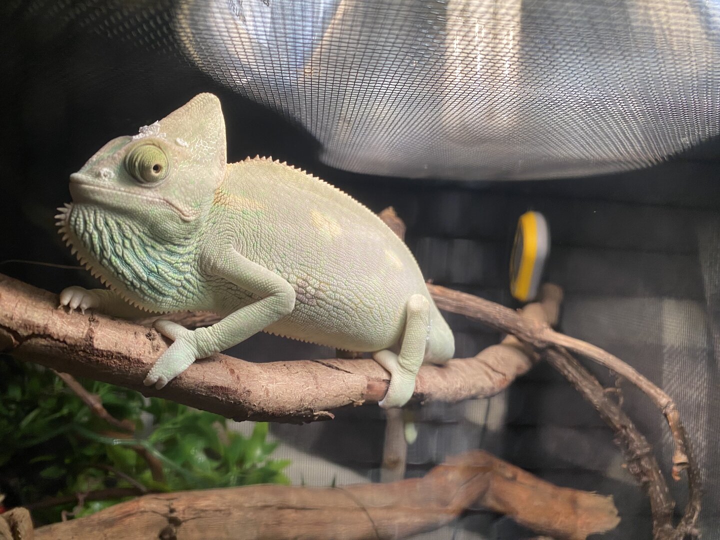 We would like to give away our Leaf , female chameleon, about 5 months old. An enclosure is included. Turned out that some of our family members got allergic on roaches. So we can’t keep roaches at home, and our Leaf doesn’t like worms much. Our location is Brooklyn, NY