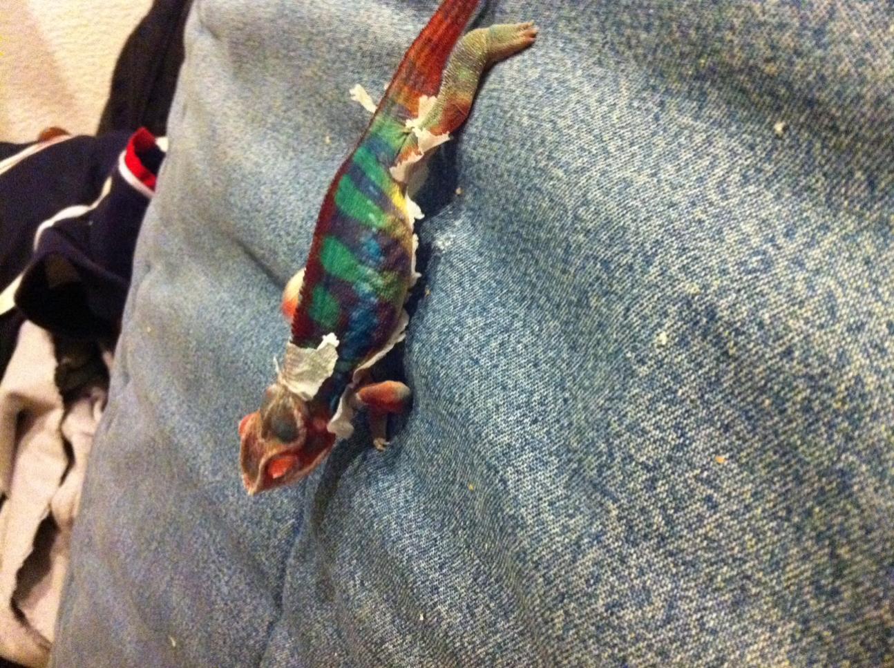 Current Problem - Cham seems to be very weak, can´t climb, fell a couple of times about 2 inches high, very slow moving. I found him at the bottom of his cage. It seems as if he can´t stand with the legs straight he doesn´t walk that much he seems to crawl because of innability or weakness in the legs