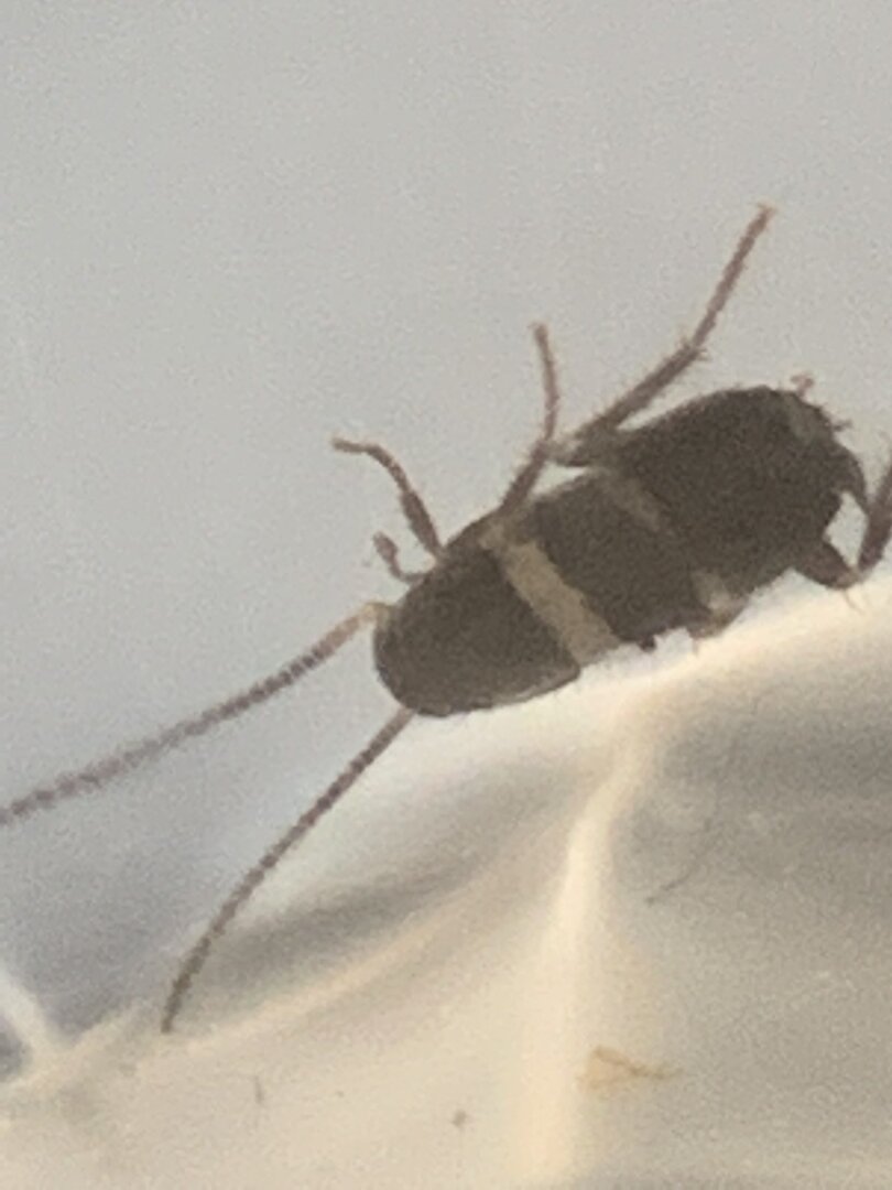 It’s freaking me out... and all I see is tiny ones. The identification page doesn’t really help me much. I already googled the hell out of it. It almost looks like a black and white mini roach.