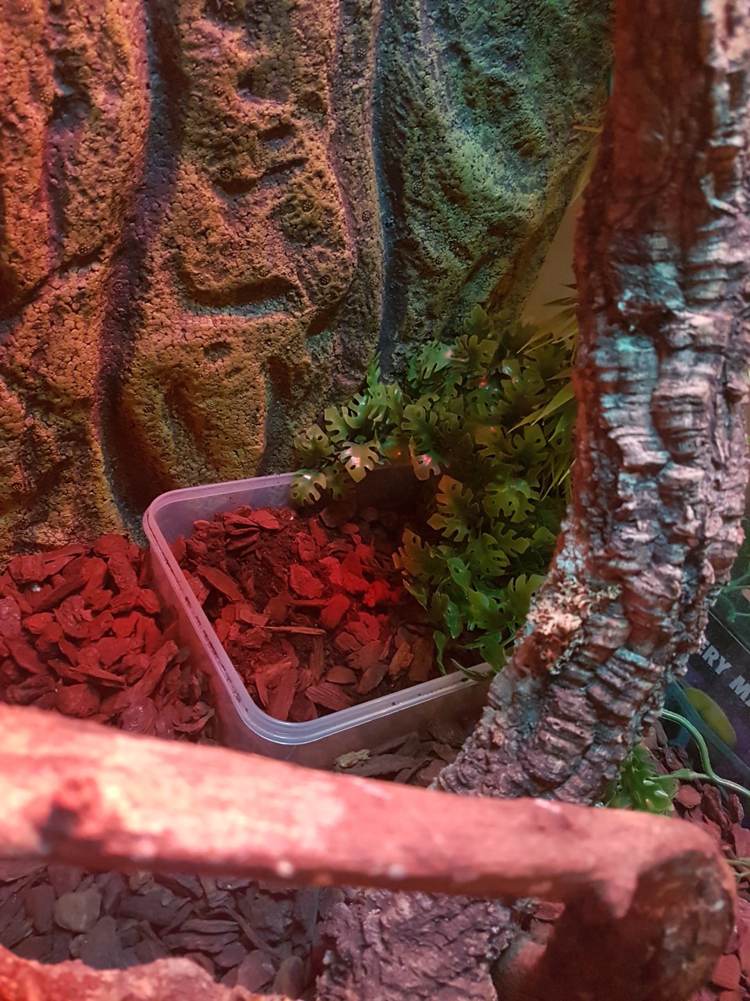 I have a 10 month old female veiled chameleon, for the last week she has been scratching at the glass and digging in the bark. Ive set up a box on the floor, about 6cm deep with sand/soil mix but she doesnt seem to like it as she keeps digging in the bark. Any body have any advice? Thanks in advance. Not a great picture of her sorry.