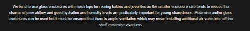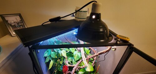 - Watering - Dripper on top plus an exo-terra monsoon solo automatic mister. I would also hand mist as needed. He always drank water in front of me off of leaves. He was always well hydrated.