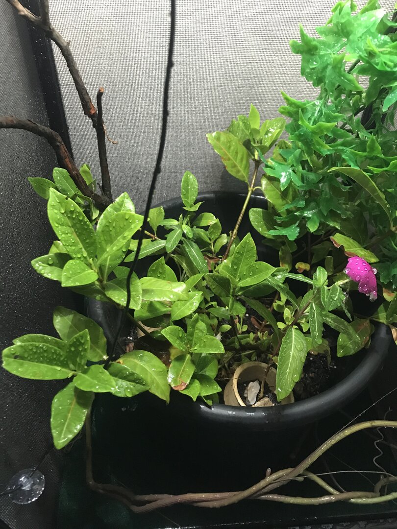 I have done research on the gardenias plants and in 2012 here on chameleon forums there was a discussion saying they are safe for plants, the vincas those I may take out it doesn’t specifically say I’d they are bad or good but she seems to drink off them and eat them just fineSo both of those plants give a white sap when a leave or a branch brakes. That can be really harmful for his eyes. Also, the gardenia blooms this really amazing smelling flower, which is really toxic for animals. Smells Like heaven though. He might be tempted to eat the flower when it blooms. The vinca is a full sun Annual so it will probably not live int he enclosure for long.