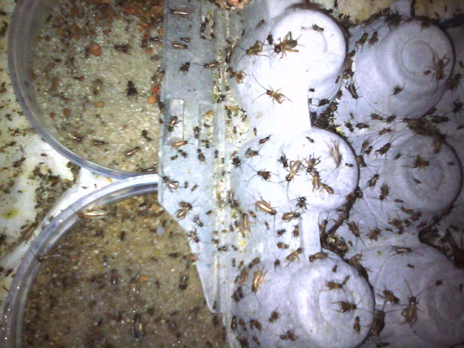 Crickets,dubias,red runners, silkworms when they make fertile eggshornworms in the summer, Giant florida katydids