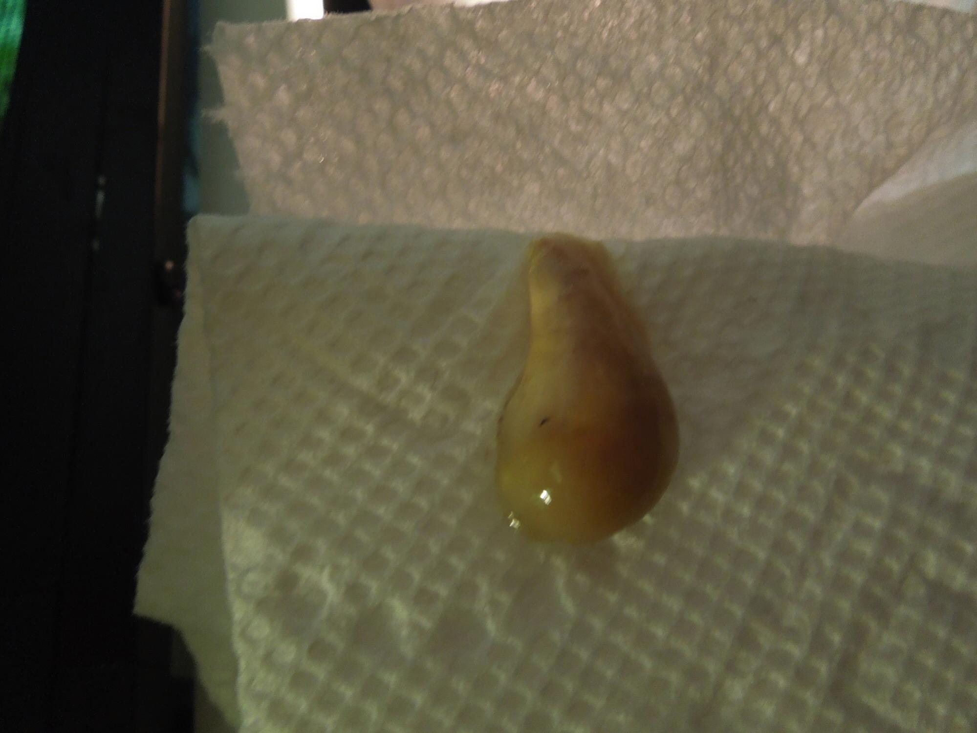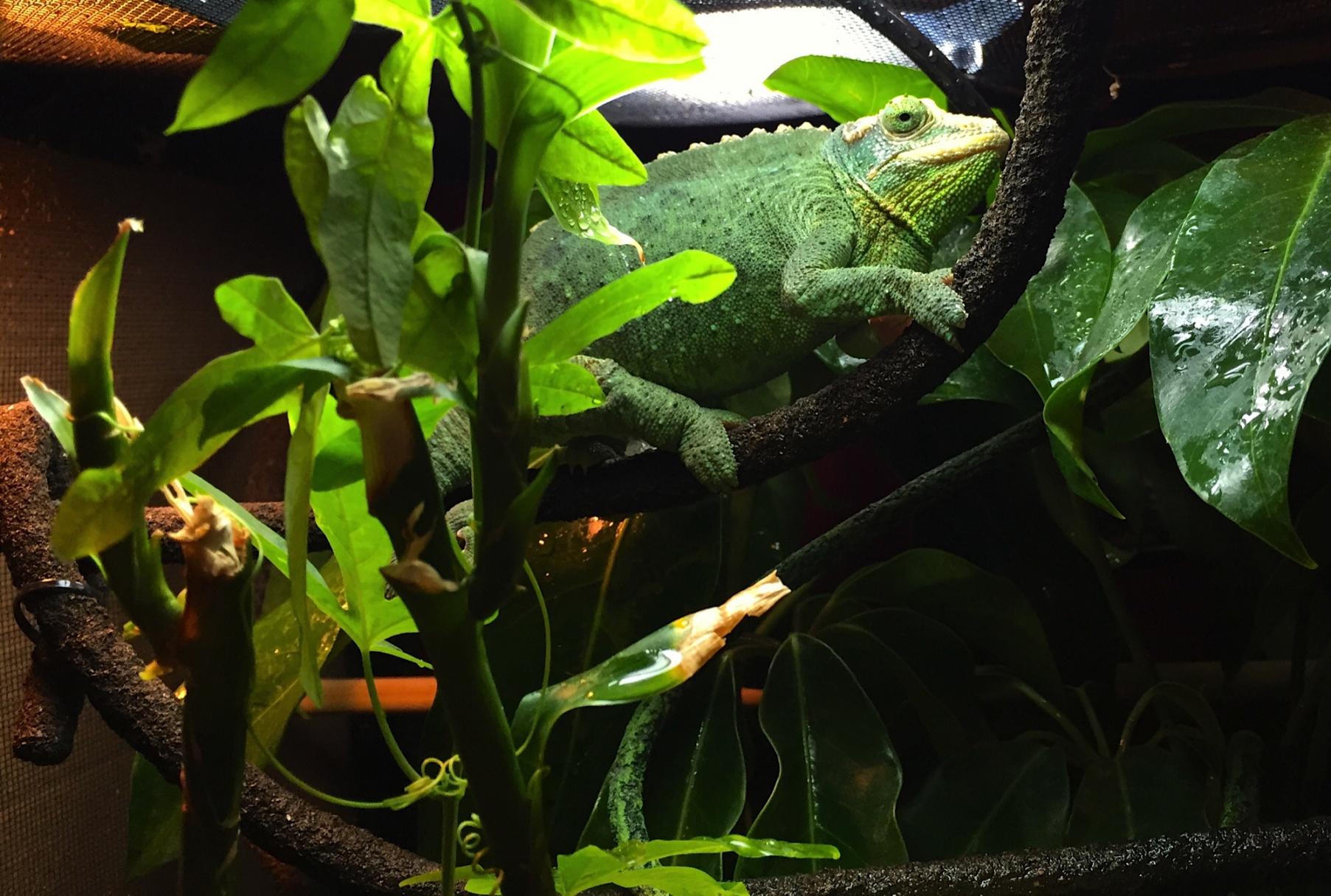 I have an adult Jackson's chameleon. She is about five and one-half months pregnant. This is her first pregnancy. She is quite large (fat and pregnant, I believe). She has always been a big girl since before I got her about 10 months ago. Today, while caring for the plants in my screen enclosures I found an off-white blob freshly deposited on a leaf. I know human women have a plug that is released just prior to giving birth. Could this be such a plug? Do you think this means she will have her babies soon? I will attempt to upload a picture of the whitish blob and a pic of my Big Girl. Thanks!