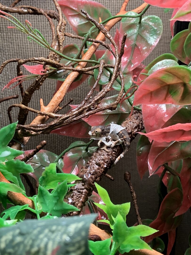 Hi everyone. I recently took home my very first cham after researching and following the hobby for several years. Initally he was doing well and acclimating to his new home well, but around maybe around two weeks ago he began to refuse food. I double and triple checked my husbandry and did tons and tons of extra research via this forum, neptunethechameleon on youtube, and chameleon academy. I didn't understand what I could possibly have wrong, so I came to the conclusion that he didn't have enough variety in his diet and he was being picky. I ordered small black soldier fly larvae and silkworms from josh's frogs bc thru my research those seemed to be the most nutritious and best fit for my little man. I ordered it earlier in the week, a tuesday, and chose 2 day shipping assuming it would come (last) thursday or friday. i waited and waited and still by friday they hadn't even sent them out (i'm assuming bc of covid or the cold weather or behind on shipments). the week went on and my guy, Jupiter, was still mostly refusing food eating maybe 1 cricket every other day or so. I didn't act fast or urgently enough because I had heard that sometimes chams will go on hunger strikes and thought it might be okay as long as I got the food soon enough ): . unfortunately I didn't realize the urgency of the situation because I wasn't aware that my guy was only a little hatchling (currently 2 mo old), I thought he was closer to 4 mo old. On monday I decided I couldn't wait any longer for the order from josh's frogs so i drove out an hour away and picked up some bsfl and more crickets from a local insect breeder. talked to the man there and he gave me lots of good info, and i figured out the issue wasnt the variety but the food i had originally been given at the repatrium was beginning to grow too big for my guy and thats why he was refusing. now that I have the right size and slightly more variety I've been offering my guy the new food, but I think it may be too late. he still only eats maybe 1 or 2 or 3 bugs each day, and he's deteriorating fast. 3 days ago the worst issues were that he was refusing food and sometimes i would catch him with his eyes closed during the day (my guess is he probably has lack of vit a due to barely eating). today, he has bad motor skills, wobbling all around, and has his eyes closed a lot more often (currently as I write this he's been sitting on the same branch w both eyes closed for the past 2 hours), so I think he was hiding it before (also why I didn't completely understand the urgency of the situation) and now it's gotten so bad that he can't mask it ): i tried picking him up bc he was hanging upside down on a vine and when I did he couldn't even hold himself up while in my hand. first thing tomrorrow morning i will be making a vet appt for asap. my heart is so broken for my little guy, i'm not sure what more to do, i feel like the worst cham mom for not acting with more urgency )): do any of you more experienced keepers have any advice for me? is there something wrong w my husbandry? do you think my little jupey is dying? ):