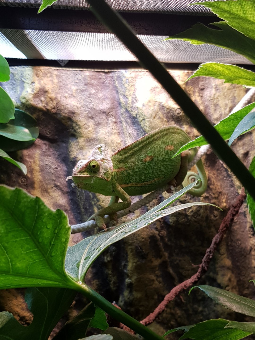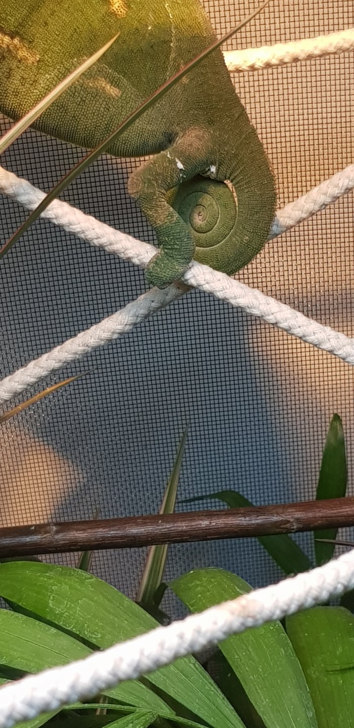 I needs a few more branches in i know before anyone tells me, but i dont want to stress it out too much as when i got it i was in a tiny glass viv with a lump of wood, 1 vine and it was full of crickets eatting polystyrene & biting it,so the poor thing was pacing up and down almost jet black & extremely stressed. I add a branch a day when the cham gets fed in the morning so hopefully it doesnt mind branch if it gets a mario worm as compensation