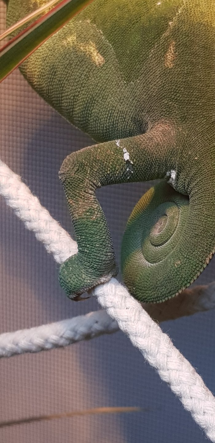 This is he/she just now in the odd occasion i can get near the chams back legs. The other pic is from 3 weeks ago. It does have small bumps which i think may have caused it to be incorrectly sexed when younger but i wouldn't say prominent to call tarsal spurs. Which is why im unsure and thought i would ask as i have no lay box for it being female