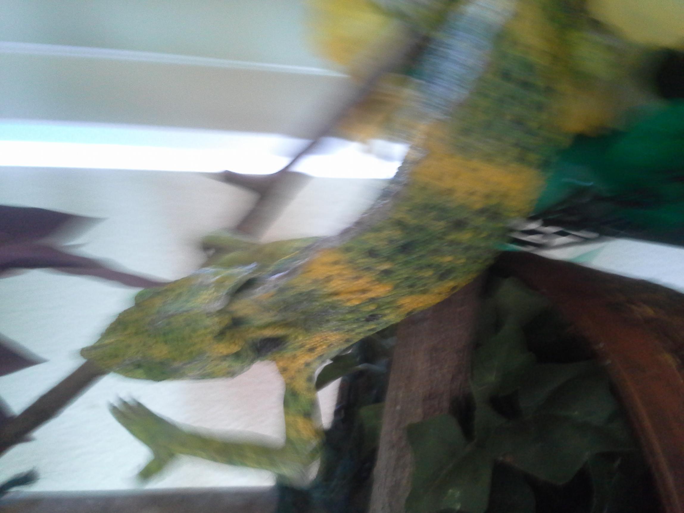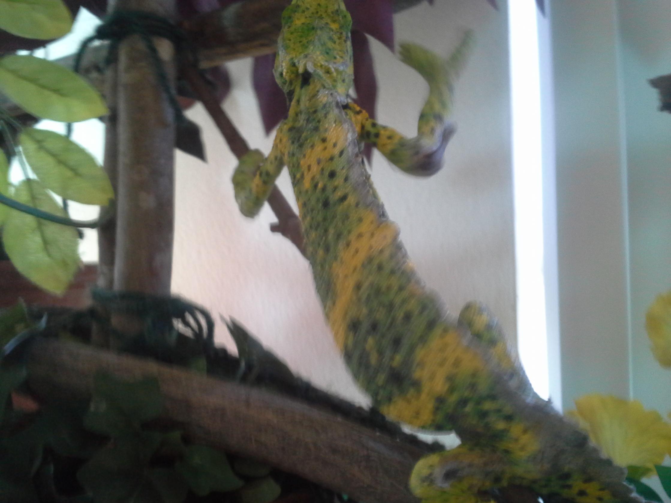 He wakes up every morning and his eyes are very alert. He hardly moves at all except to get closer to his heat lamp. He does interact with a Panther that he finds annoying but is most of the time completely relaxed.