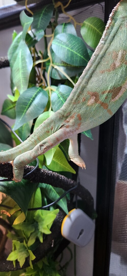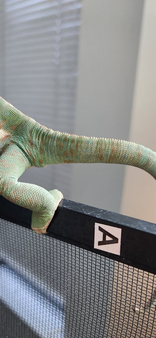 I’ve been helping this keeper with their husbandry and should mention they very recently switched to Reptivite with D3 instead of Repashy LoD for their multivitamin after I saw the edema that has formed. I also helped them get a proper laying bin set up and recommended raising the T5 UVB bulb up above the enclosure until they can get a larger enclosure. I don’t have much experience with tail rot and since the existing spots haven’t gone away and new ones are forming, that’s my hunch but not sure what the solution would be beyond seeking vet care.
