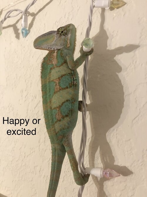 I don't have very many pics of him because my phone went for a swim lol. The second pic I was just labeling for my pet sitter.Please post some pictures of your chameleon.