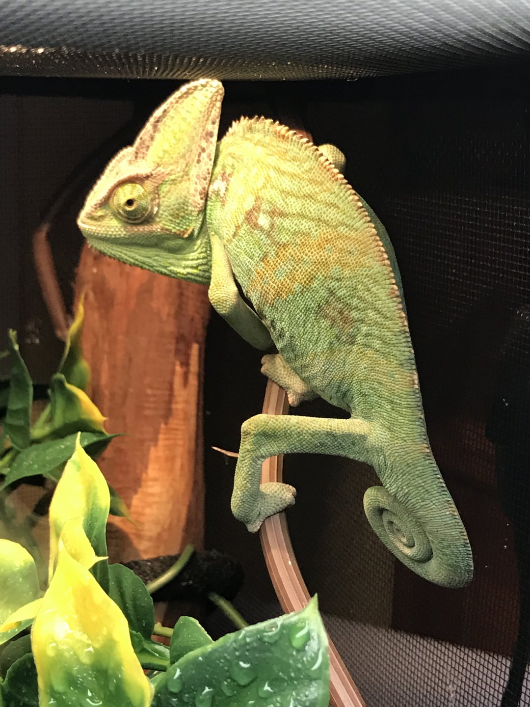 My male veiled chameleon is approximately eight inches. He is currently in the medium reptibreeze (16x16x30) and I have an extra large reptibreeze (28x28x48) that I'm waiting to set up for him when the time is right. About what size should he be before I move him over, or is he a good size for it now? Thanks!