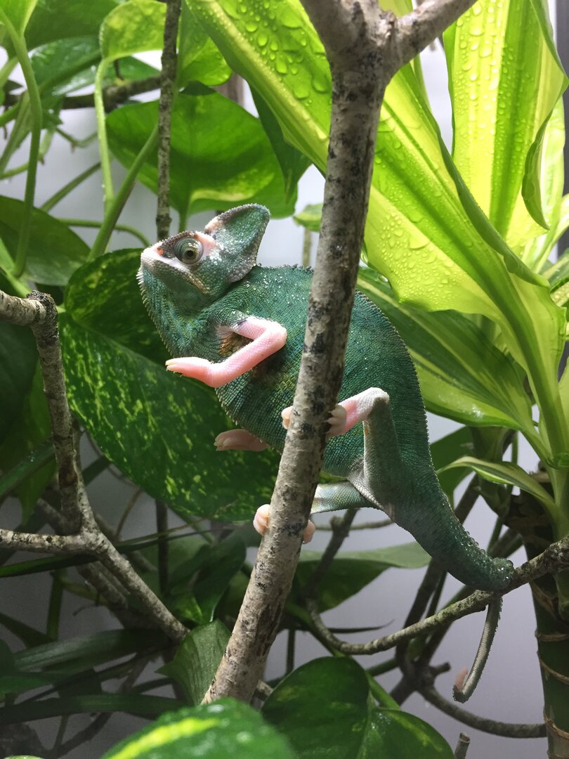 Yeah yours the feet may go white or even black as they mature. Some will hold the pink skin. Those that do not are considered pied morph more then a translucent. Bentley is more of a true translucent as he has so many pink sections.He's Fantastic! I have two veiled translucent females, but very little white and pink comparably to your little fellow... He's top marks for looks!!! I also got my third recently and thought I had lost my marbles, but I'm smitten.