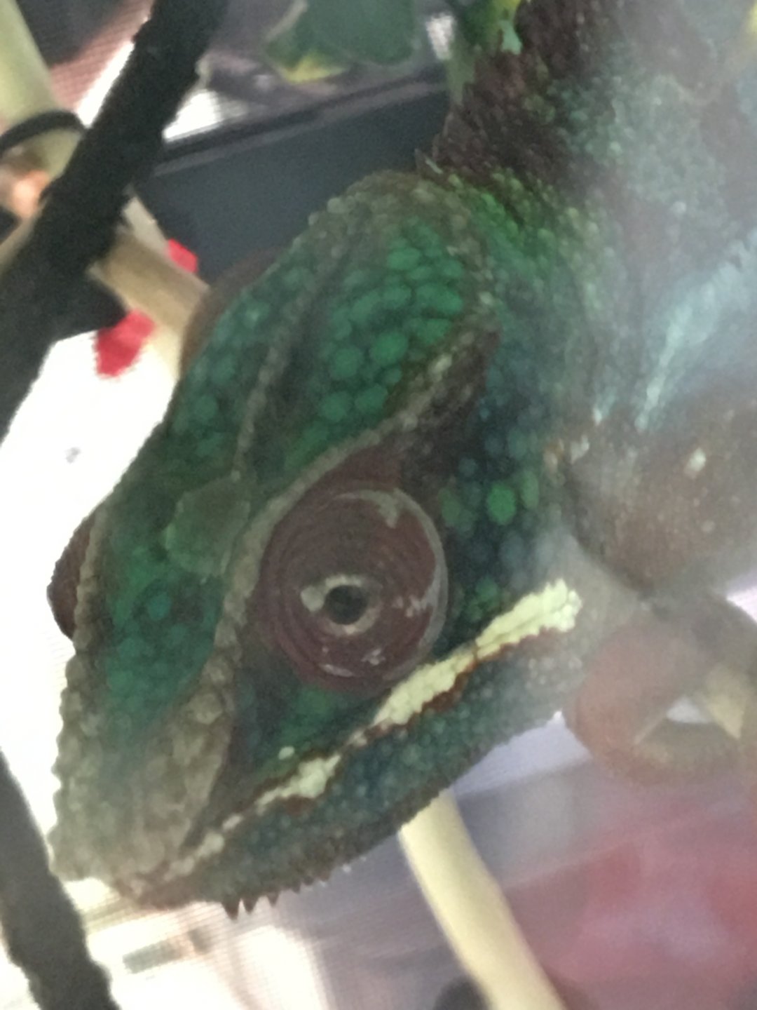 Hola! Jack Skellington is a blue barred ambilobe panther male of around 3 years of age. This white growth in his eye is getting bigger!! What is it? Thank You!