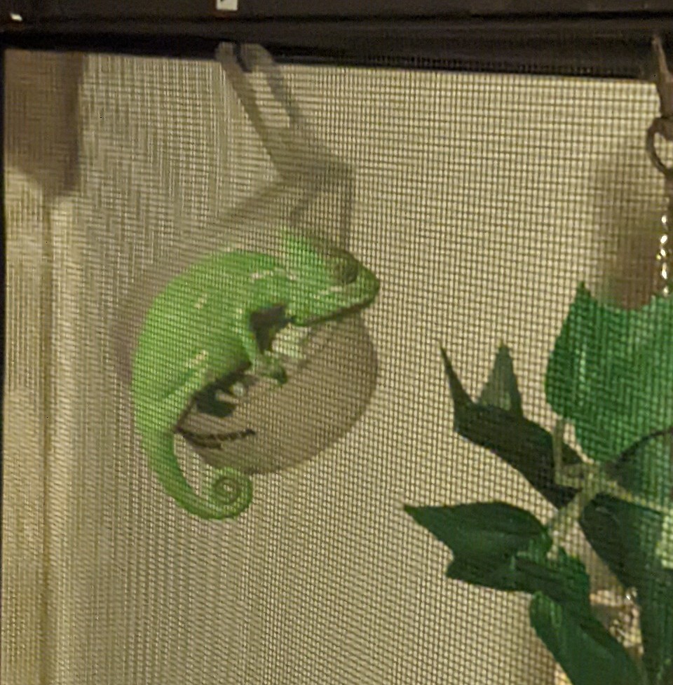 Your Chameleon - Veiled female, approx. 8 to 9 months old. Purchased at Reptile show on April 23rd and was told she was between 6 to 7 months old.