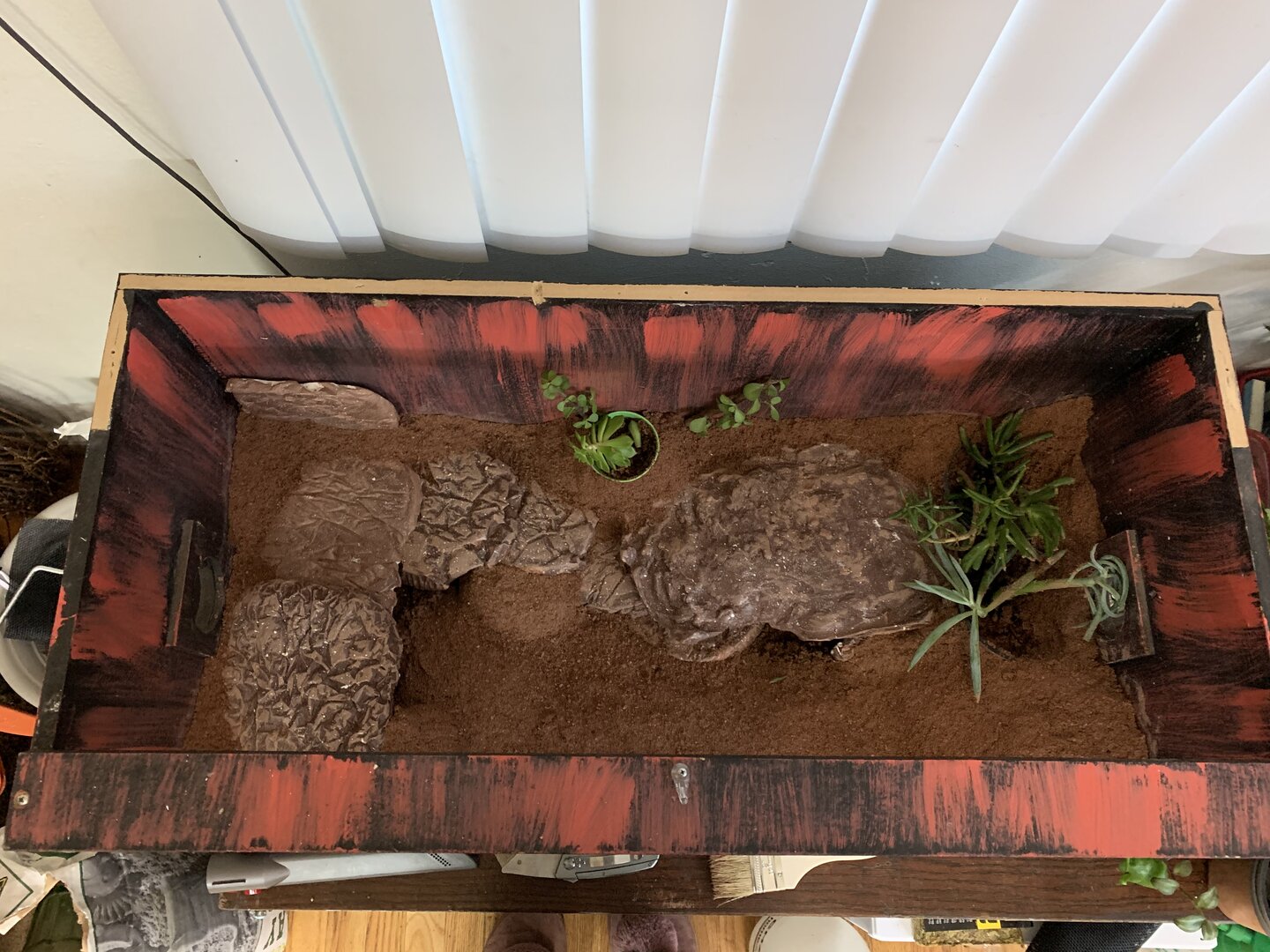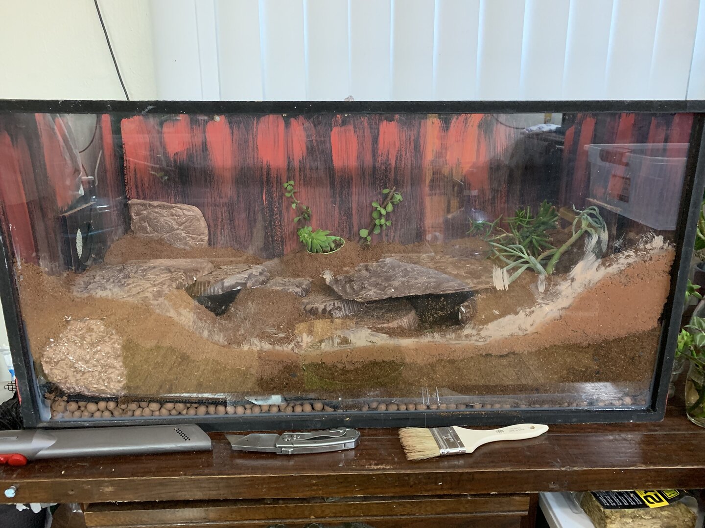 I’m sure your enclosure looks fabulous, all the “rocks” I made them myself. I bought plaster and made molds out of tinfoil.