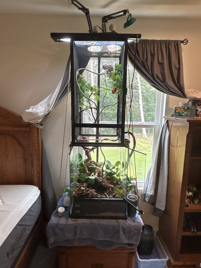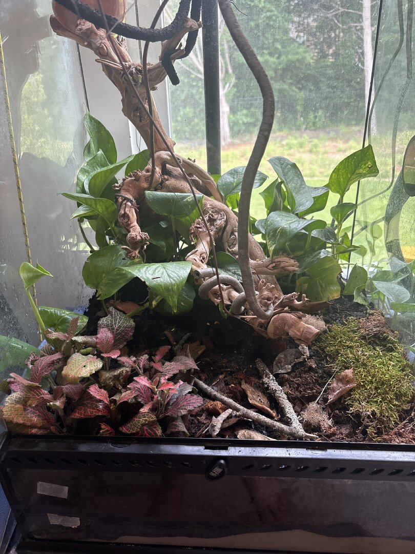 I’ve had my chameleon for 2 months give or take and I noticed that it started to dig in his enclosure. I asked about it before and the only thing I could really do is get a somewhat bigger enclose (photos bellow). So now he’s in a 5 foot high enclosure that’s about 18in long and wide. It’s bio active and the soil is soft so it’s easy for my cham to dig in it. But he only digs in the same spot and I don’t understand why. If anyone has any ideas please let me know.